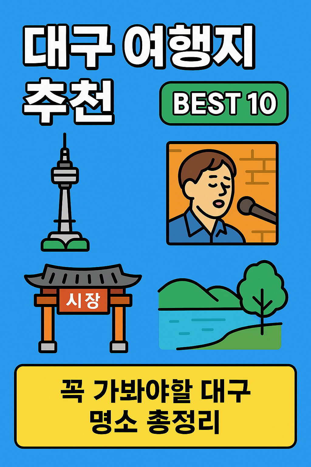 뜨거운 열정의 도시, 대구! 사계절 내내 매력 넘치는 대구는 여행지로도 정말 알찹니다. 오늘은 대구에서 꼭 가봐야 할 여행지 TOP 10을 소개해드릴게요. 여행 코스 짜기 전 필수로 참고하세요!