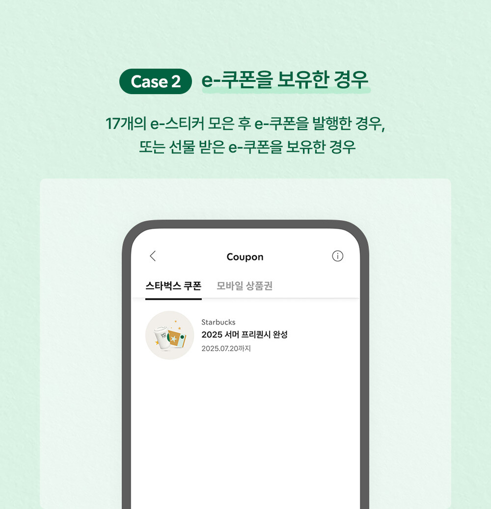 - 2025년 7월 21일 사용하지 않은 완성된 e-프리퀀시, 적립된 e-스티커, 증정품 교환 e-쿠폰, 예약 확인증은 모두 소멸되며, 증정품 예약/교환이 불가합니다.
